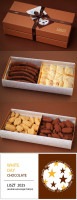 オレンジピールチョコレート(90g)+ホワイトオレンジチョコレート(90g) +ピーカンナッツチョコレート(キャラメル / 90g & ココア / 90g) が入っております。